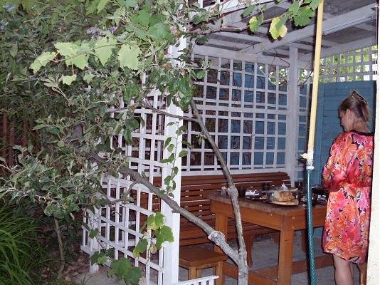 Через дорогу расположен продуктовый магазин, небольшой прилавок с овощами и фруктами, напротив санаторий Золотой колос, где проходят для детей дискотеки.