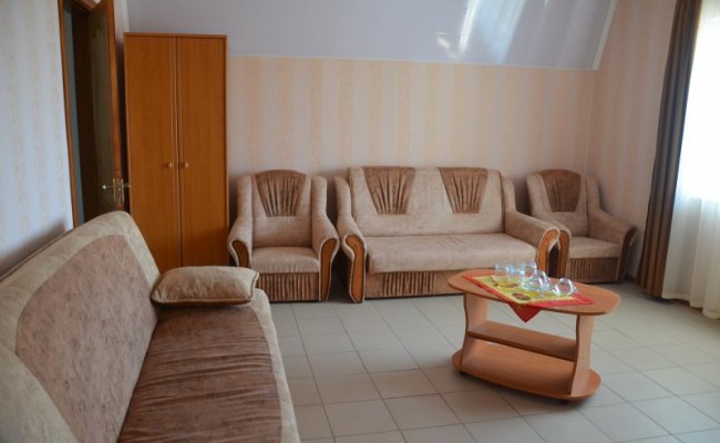 К услугам гостей 2-х, 3-х и 4-х местные номера категории люкс, оснащённые всем необходимым для отдыха: комплект мебели, кондиционер (сплит-система), холодильник, телевизор (спутниковое TV c лучшими украинскими и российскими каналами), чайник, постельное бельё и полотенца. Санузел оснащён душевой кабиной, умывальником, унитазом и т.д. Подача горячей и холодной воды круглосуточно. Номера 2-го и 3-го этажей имеют веранды. На территории отеля расположена летняя кухня, укомплектованная всем необходимым для приготовления и принятия пищи. Так же имеется небольшая детская площадка для самых маленьких гостей. Для любителей кавказкой кухни имеется мангал и барбекю с шампурами.