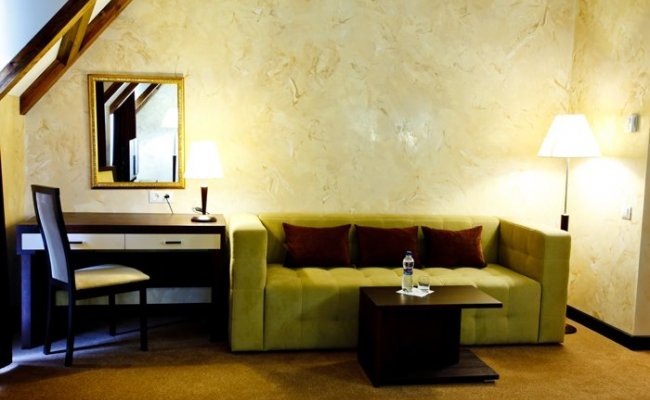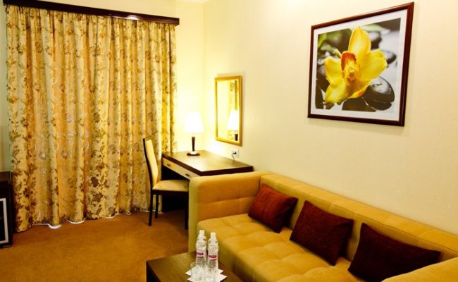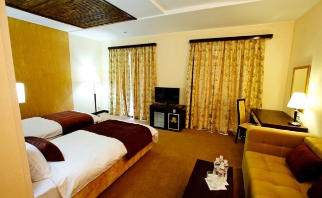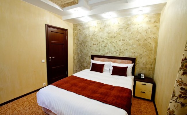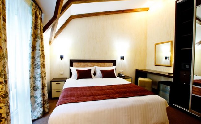 В каждом номере: двуспальная кровать, прикроватная тумбочка, рабочий стол, журнальный столик, шкаф, телевизор, кабельное ТВ, телефон, кондиционер, мини-сейф, мини-бар, фен, банный халат, ванная комната с душевой кабиной.