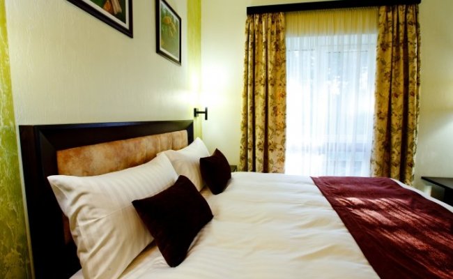 Эко-отель «ШишкiNN» соответствует уровню «4 звезды» и предлагает одно-, двух- и трехкомнатные номера различных категорий. Из окон всех номеров открывается живописная панорама на озеро или сосновый бор.