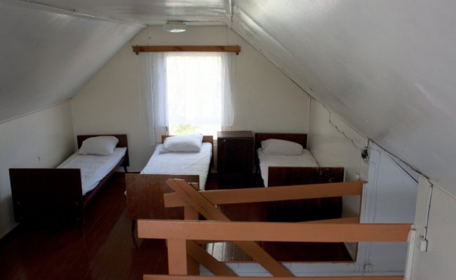 В домиках вы найдете все необходимое для комфортного отдыха: кровати, шкафы, вешалки, стулья, тумбочки. В холле некоторых домиков установлены холодильники. Верхний лагерь расположен в районе 30-й батареи на вершине природного холма. С территории Верхнего лагеря открывается великолепный вид на морское побережье и живописные окрестности.