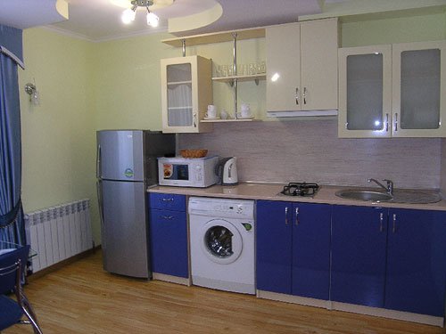 Горячая и холодная вода постоянно, кабельное TV, кондиционеры, стиральная машинка, печь СВЧ, холодильник, телевизор, чайник, утюг, набор посуды.