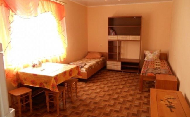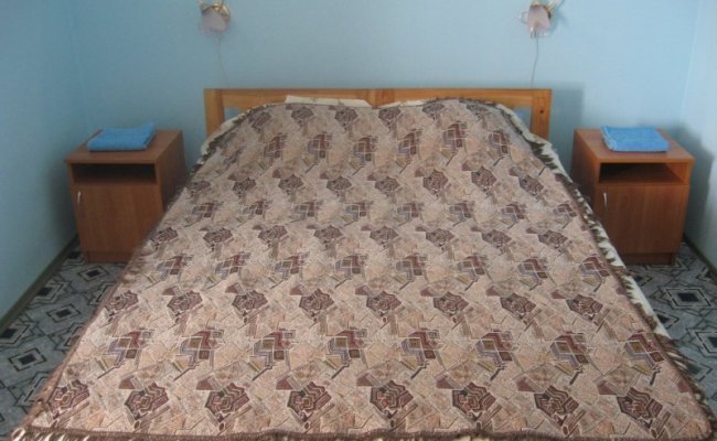 Арабатская стрелка, пос. Ген. Горка (бывший д/л "Колос"). Двухкомнатный номер, рассчитан на 4-е спальных места со всеми удобствами: сан. узел, душевая кабинка, всегда есть горячая вода(боллер), кондиционер, холодильник, чайник, балкон. Печки в номере нет. До моря 50м. (1-я береговая линия). Пляж с навесами от солнца и лавочками, песочный берег, чистое море. На пляже катамараны, горка, банан, парашют и т.д. На территории есть два хороших кафе и столовая - меню там полное, от первых блюд до напитков, кухня домашняя, цены умеренные, не ресторанские. Рыночек, магазины и кинотеатр тоже рядом (100-200м. от номера). Стоянка для авто есть(бесплатная).