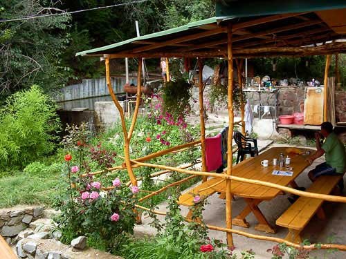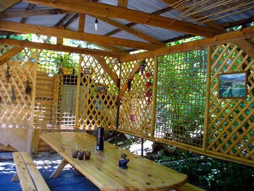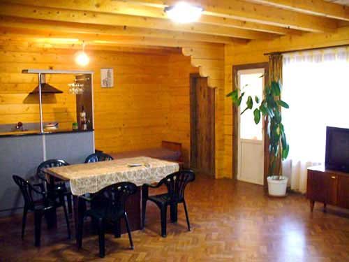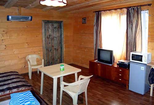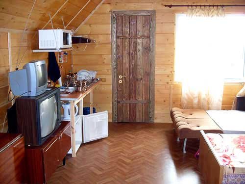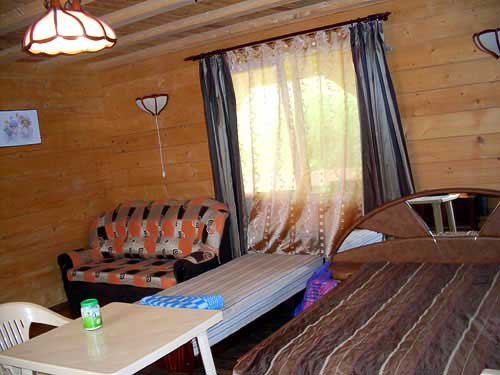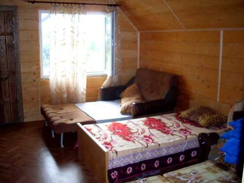 На большом зеленом участке расположено несколько отдельных построек: один двухэтажный дом, каждый этаж вместимостью до пяти человек, и один одноэтажный большой дом, вместимостью до семи человек. Все дома полностью благоустроены. В домах есть душ, туалет, кухня, горячая и холодная вода круглосуточно, место для приготовления шашлыка и еды на костре. Отдельно расположена уютная большая баня вместимостью до 15 человек с бассейном, кухней и местом для шашлыка.