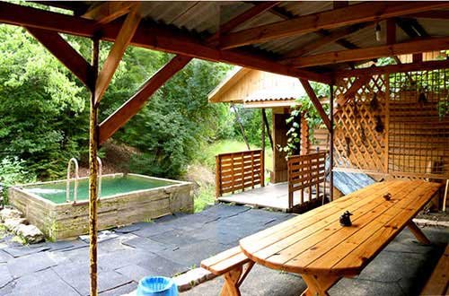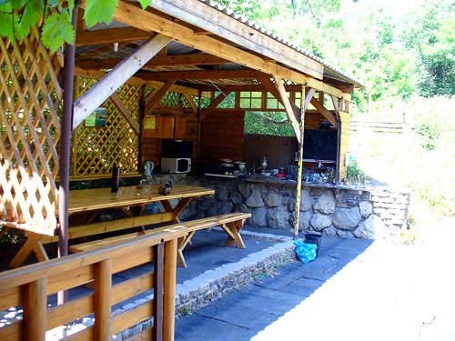 На участке есть две крытые площадки с большими столами для проведения однодневных праздничных вечеринок. Территория находится обособленно от жилых строений, поэтому громкая музыка и шумные мероприятия не возбраняются. При желании вы можете отведать блюда приготовленные на костре гостеприимным хозяином.