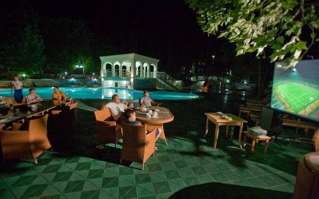 Дизайн и оборудование номеров полностью соответствует международным стандартам уровня 4*. С балконов открывается прекрасный вид на горы, парк или море до которого всего 200м. Имеет развитую инфраструктуру с широким спектром услуг, барами и ресторанами, спортивными площадками: чудесный комплекс открытых бассейнов (спортивный 25м, разноуровневый и детский); качественно оборудованый собственный пляж с баром; ресторан с большой летней террасой; лобби-бар и аквабар; мини-футбольное поле с искувственним покрытием, теннисные корты (hard и грунт), площадки для бадминтона, пляжного футбола и волейбола; тренажерный зал вместительная парковка для автомобилей. Много внимания уделяется детям. В отеле организован MINI CLUB с детской игровой комнатой и большой детской площадкой.