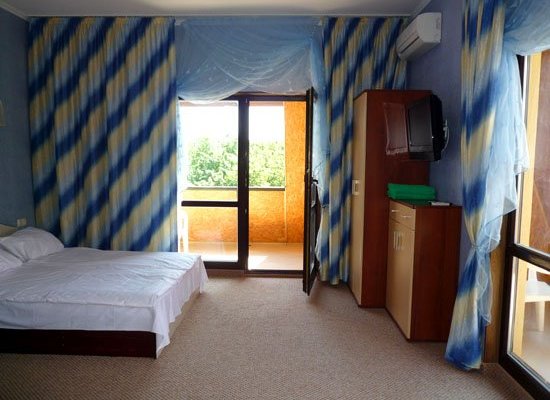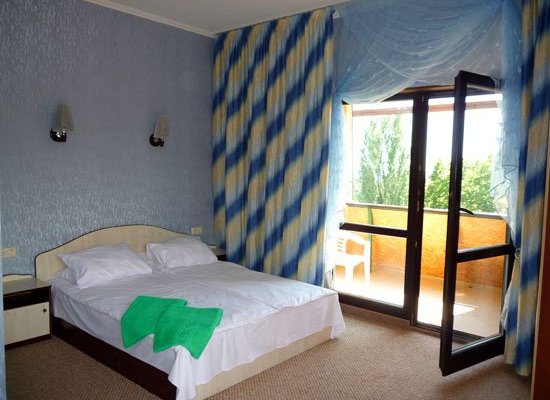 Стандартный - однокомнатный просторный номер с видом на море и на гору Демерджи, двуспальная кровать, мягкое ковровое покрытие, шкаф, телевизор, холодильник, кондиционер, кухонный уголок, кухонная посуда, чайник, микроволновая печь, ванная комната с душевой кабинкой, биде, комплект банных полотенец, сушилка для белья, два просторных балкона.