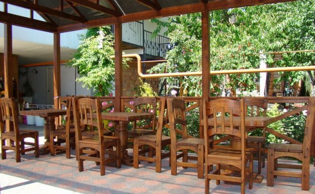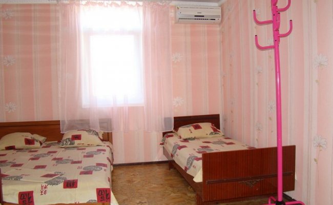 К вашим услугам: 2-х, 3-х и четырехместные номера с новой мебелью, кондиционерами, холодильниками, телевизорами и др. Интернет Wi-Fi на территории. Горячая и холодная круглосуточно. Есть три кухни со всем необходимым для приготовления пищи, а также стир. машина-автомат, газ. печь утюг и т.д.