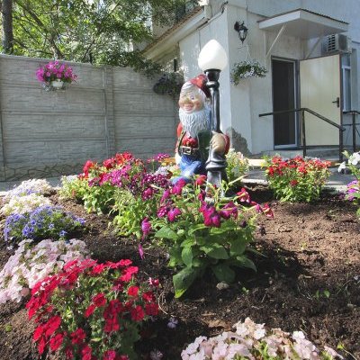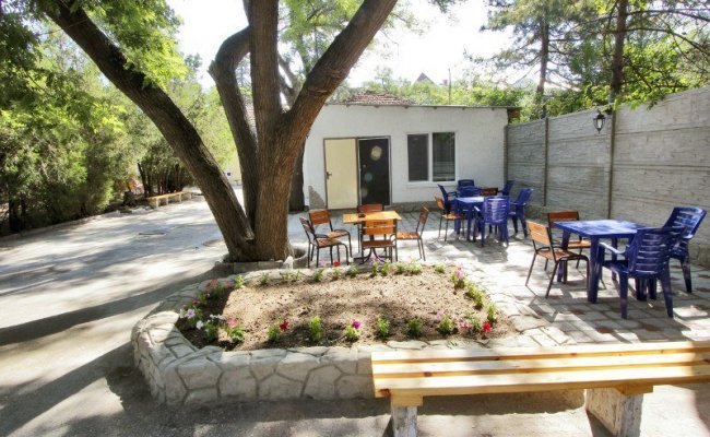На территории гостиницы "У моря" есть красивый уголок с зелеными насаждениями, здесь находятся удобный лавочки, на свежем воздухе можно проводить отдых с детьми в Евпатории. У нас можно не только хорошо провести летний отпуск, но и поправить здоровье, вы можете посетить кабинет для ингаляций, пройти курс оздоровления лечебными грязями и физиотерапии, есть так же кабинет массажа.