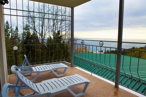 Из окон номеров открывается прекрасный вид на море и гору Ай-Петри.