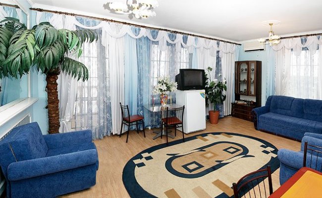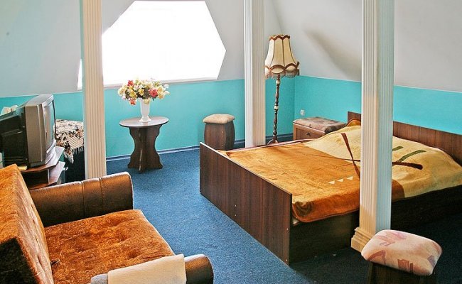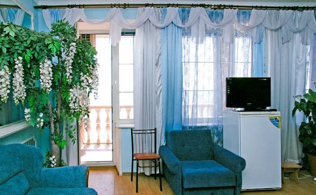 Частный отель предлагает свои гостям максимум комфорта во время отдыха на море в Бердянске. Все номера оборудованы кондиционерами, холодильниками, телевизорами с плоским экраном, спутниковым ТВ и оформлены в элегантном стиле. К услугам гостей бесплатный Интернет Wi-Fi и бильярд.