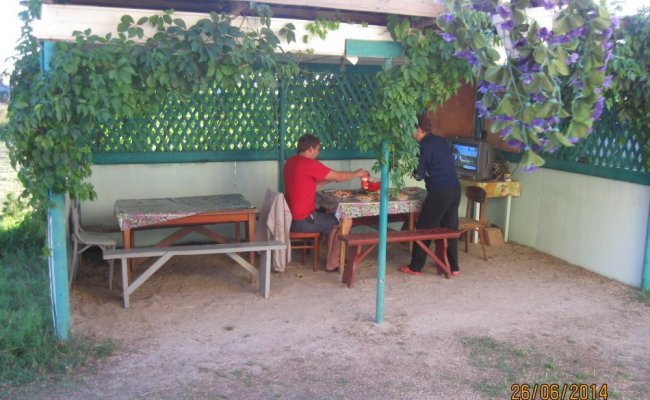 Из небольших минусов: до моря идти минут 10, пересекая трассу, но зато ночью не слышен и не мешает спать шум машин. Возле трассы есть большой рынок, где покупала все необходимые фрукты/овощи, магазины, пансионат, где находятся кафе, кинотеатр. Также ездила на горячий источник и соленое озеро, которые находится в 5-ти км по трассе (подбирают попутки/автобусы за 5-7 грн (по крайней мере такие цены были прошлым летом)