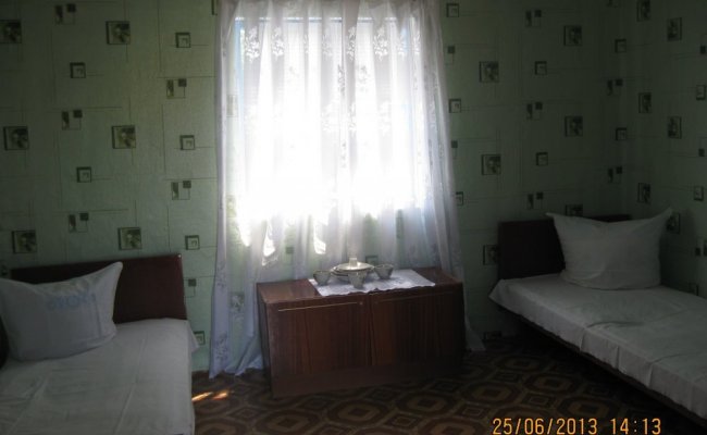 Вполне приличные номера за свою цену (было 50 грн). В номерах есть холодильник. Душ (летний и также с горячей водой), туалет, летняя кухня - во дворе. Двор вполне уютный. Море понравилось, теплое, мелкое, как раз для детей. По пути от домиков к морю есть рынок, магазины, кафе, детские аттракционы. В 15 минутах ходьбы есть дельфинарий. В общем - советую! (соотношение цены и условий).