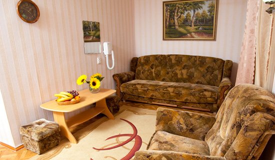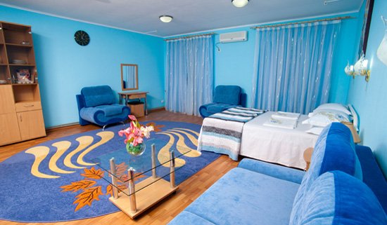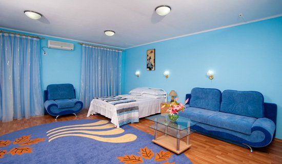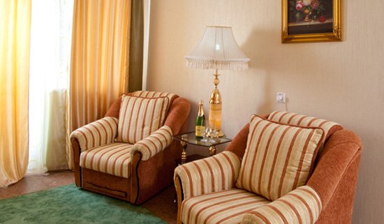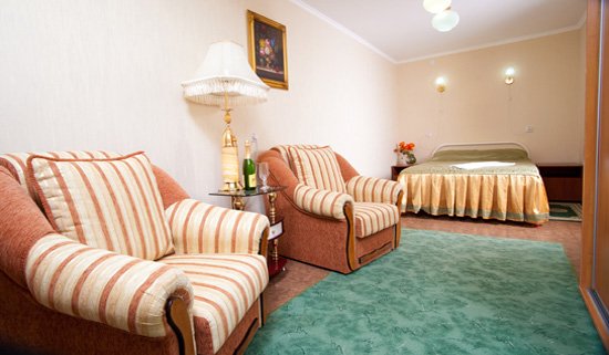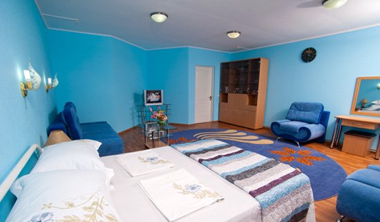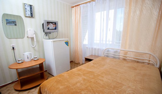 Холодильниками, телевизорами, кондиционерами, электронными сейфами, фенами. В каждом номере есть санузел (ванная и туалет, умывальник, горячая вода). Во всех номерах есть балкон (за исключением номеров класса «Апартаменты» и «Люкс»).