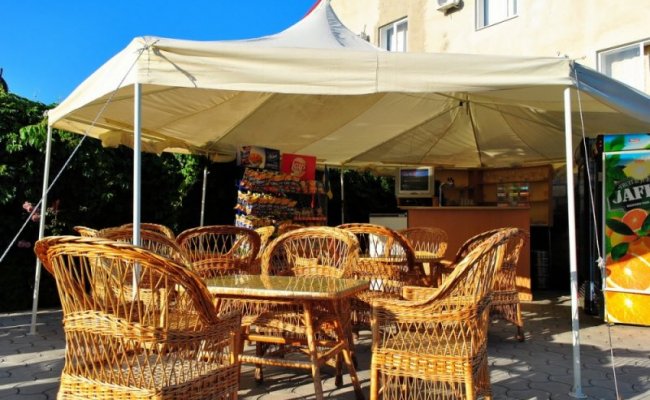 Для тех кто ценит время своего летнего отпуска и не желает готовить себе еду во время отдыха на море, курортный пансионат "Эверест" предлагает трехразовое питание в собственной столовой. В вечернее время вы можете приятно провести время в уютном летнем кафе на территории пансионата.