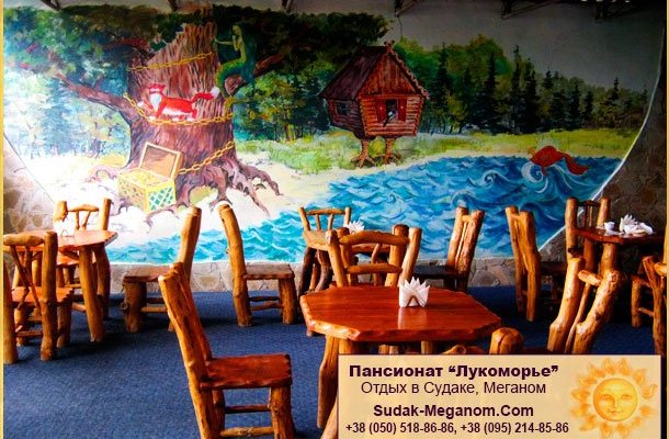 При желании гости "Лукоморья" могут заказать двухразовое или трехразовое питание в интересно декорированной столовой на территории частно сектора.