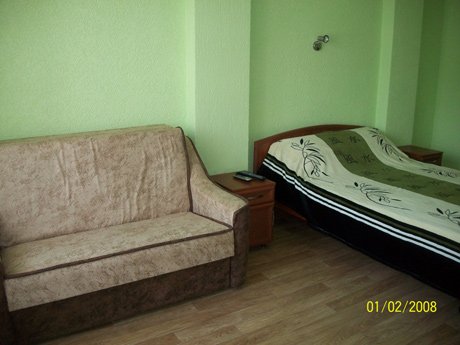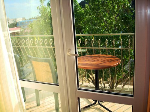 Во всех номерах установлены большие трехметровые окна и есть выход на просторный балкон.
