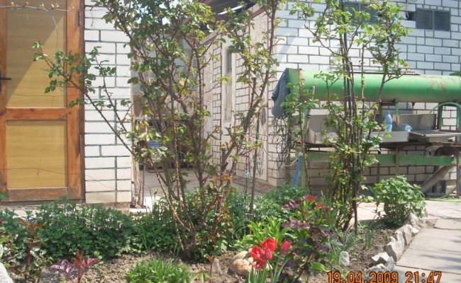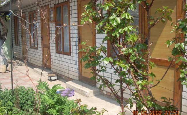 Во дворе 8 номеров эконом класса, имеется общая кухня во дворе, 3 душевые (один с горячей водой из бойлера), 3 туалета с унитазами, розарий, фонтан, детская площадка с детским бассейном (диаметр - 5 метров, глубина - метр) и песочницей.