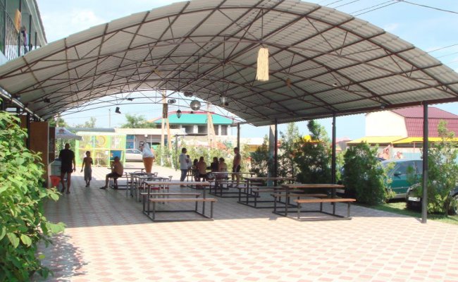 Отдыхали в конце июня. Приезжали с Каравелла Тур остались очень довольны, чистые номера, внимательный персонал и хозяин, развлечения есть для маленьких, домашняя кухня. Море в 5 мин ходьбы, песок и море чистое, за углом есть магазины и базарчик. Мой сын ел всё. Очень понравились сырники со сметаной, борщ с пампушками чесночные, перец фаршированный. Кухня действительно домашняя, хорошие порции. В номере у нас был холодильник, кондиционер, телевизор, туалет, душ, умывальник, горячая вода, кровати с хорошими матрасами. Целый день питались а столовой покупала только фрукту, есть бар.