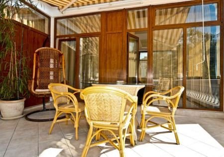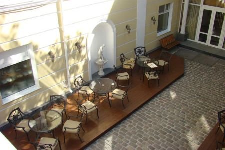 Уютный номер с одной комнатой общей площадью 26-30 кв.м. номер оборудован двуспальной кроватью, мягким уголком, телефоном, кабельным и спутниковым телевидением, кондиционером, мини-баром, электронным сейфом, ванной комнатой с подогревом пола и всеми необходимыми гигиеническими принадлежностями (производство – Франция). Есть номера с выходом на террасу. Окна выходят в тихий утренний дворик.