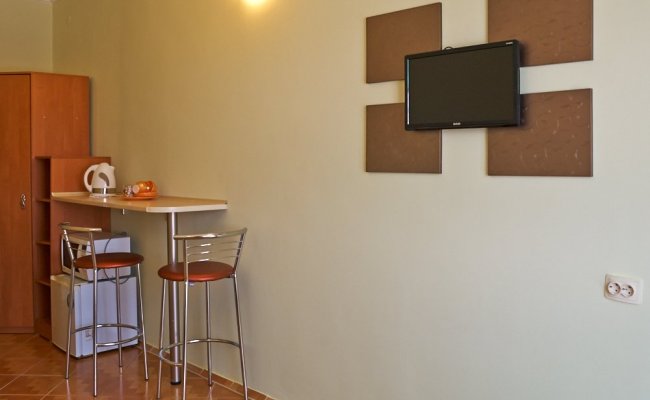 В номере: санузел (душ, туалет, умывальник), горячая/холодная вода круглосуточно, обеденная зона, современный ремонт, новая мебель, спутниковое ТВ, холодильник, микроволновая печь, кондиционер, чайник, утюг, фен, Wi-Fi с безлимитным интернетом в номере.