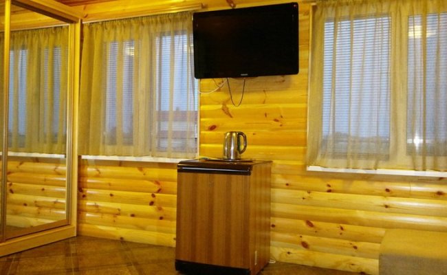 Номера «Люкс» - это отдельно стоящие домики внутри отделаны натуральным деревом с выходом на просторную террасу – панорамный вид на море и заповедную зону Бердянской косы. В номере все удобства (евроремонт): сплит-система, ЖК телевизор - спутниковые каналы, современная корпусная мебель, встроенный шкаф-купе, двуспальная кровать с ортопедическим матрасом, мягкий уголок для отдыха, холодильник, эл.чайник, инд. Сейф и др. Номер «Люкс» оснащён отдельным санузлом с современной душевой кабиной, бойлером и феном.