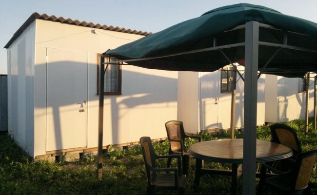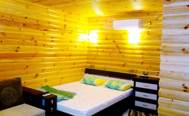 В домиках «Эконом» класса (на 2-3 человека): кровати, ТВ, зеркало, тумбочки, вентиляторы. Для каждого номера (домика) предусмотрена своя тентованная палатка с москитной сеткой и освещением.