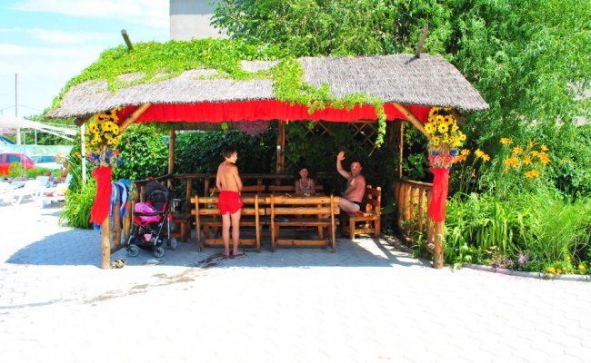 Большая частная территория курортного пансионата «Paradise» прекрасно оборудована для того чтоб хорошо провести отдых в Железном Порту, здесь есть бассейн, навесы от солнца с шезлонгами для отдыха на чистом морском воздухе, есть детский городок с качелями для деток, есть мангал для приготовления шашлыка. Есть беспроводной доступ к сети Интернет через Wi-Fi.