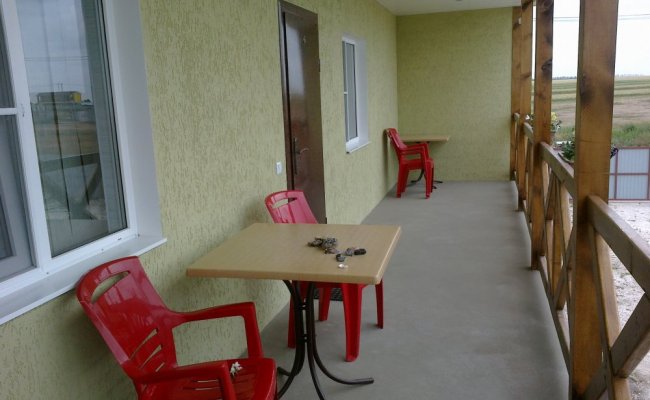 В номере есть сплит-система, телевизор с плоским экраном, спутниковое ТВ, WI-FI, большой холодильник, шкаф, удобный столик, с террасы открывается отличный вид на Азовское море.