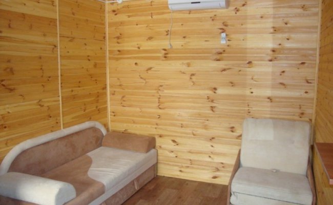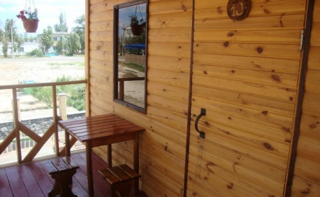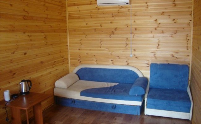 Номера на первом этаже: установлена мягкая мебель – двуспальный диван и кресло-кровать, есть холодильник, кондиционер, эл. чайник, телевизор. По необходимости, за дополнительную плату, может быть установлена евро-раскладушка. Возле каждого номера имеется просторная веранда со столом и стульями где можно покушать на свежем морском воздухе.