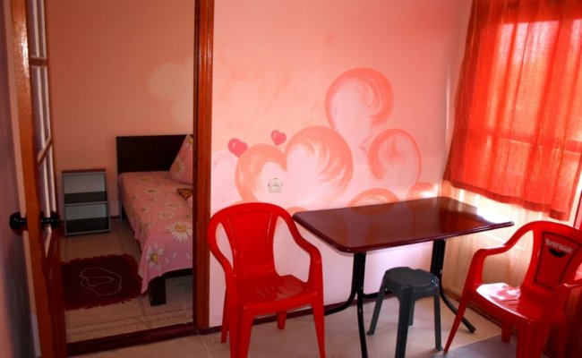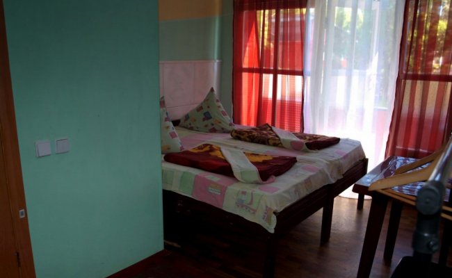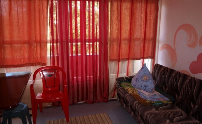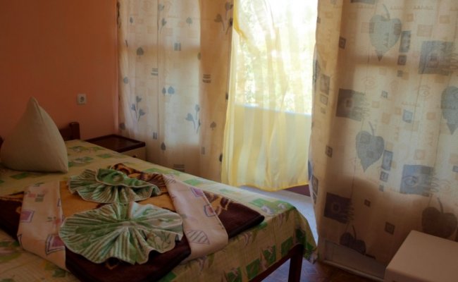 - 3х комнатные номера категории "Комфорт" 5ти местный (блок 2+3) (2 шт.): две спальни, в которых кровати, тумбочки, стол, стулья. Между ними общая небольшая гостиная со столом и стульями (кресла или диванчик). Каждая комната с балконом. Общая прихожая с холодильником и санузел - душ, умывальник и туалет.