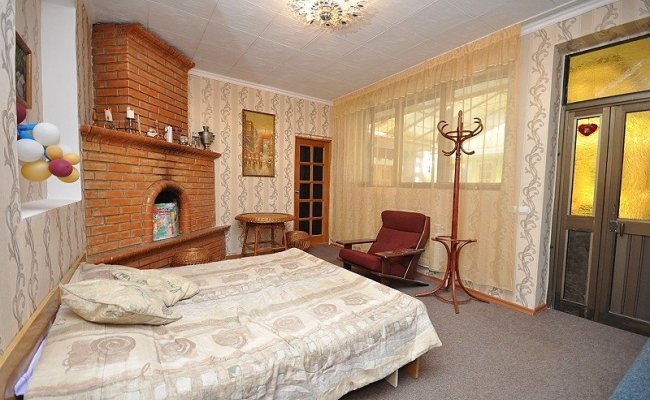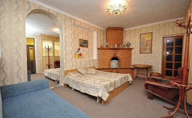 В номере может расположиться от 10 до 12 человек. Два 2-х комнатных номера соединены между собой большим санузлом, есть своя кухня. В комнатах находятся 2-х и односпальные спальные кровати, шкафы, зеркала, телевизор, в одной из них есть камин. В санузле присутствует ванная, унитаз, зеркало. На кухне есть вся необходимая посуда, газовая плита, холодильник.