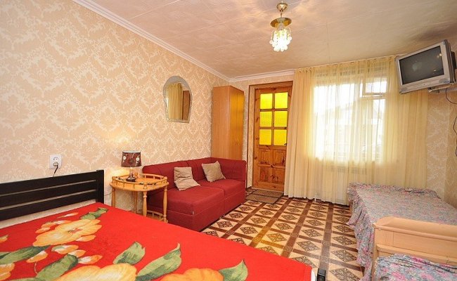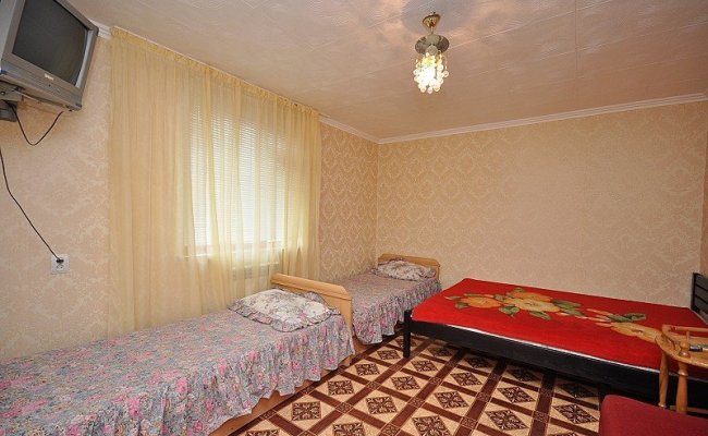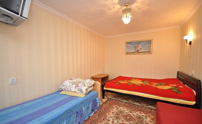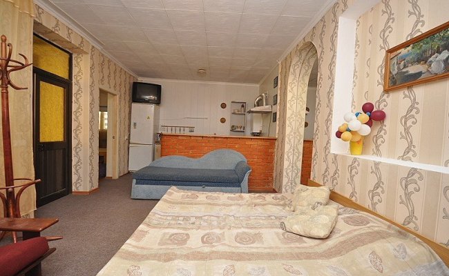 В номере может разместиться от от 4 до 7 человек (по 3 человека в каждой комнате), своя кухня и санузел. Комнаты могут быть как изолированными (отдельный выход из каждой комнаты), так и смежными. В 1-ой комнате находиться 2-х спальная кровать и диван, во 2-ой 2-х спальная кровать и одноместный диван. В комнатах есть телевизоры, шкафы, столы и все нужное для отдыха на море. На кухне присутствует весь набор необходимой посуды, газовая плита, холодильник. Ванная комната оснащена ванной, раковиной, унитазом.