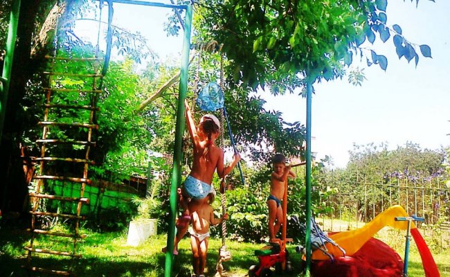 Большая территория нашего частного сектора в г. Бердянк располагает для весёлых детских игр и комфортного отдыха на море взрослых. Во дворе – по-домашнему тепло и уютно - столики со стульчиками для отдыха и зелёная зона с плодовыми деревьями - площадка для игры Ваших детей.
