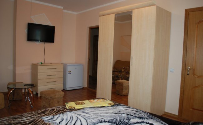 К услугам отдыхающих комфортабельные номера 2-х, 3-х и 4-х местные "Полулюкс" и "Люкс" класса. В номерах: новая современная корпусная и мягкая мебель, 2-х спальная кровать с ортопедическим матрасом, большой шкаф, кондиционер (сплит-система), плазменный телевизор (кабельное ТВ), холодильник, душевая кабина, фен, полотенца, туалетные принадлежности, др. В номерах регулярно производится влажная уборка и смена постельного белья. Холодная и горячая вода круглосуточно.