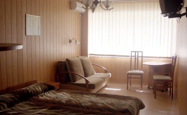 Комплектация номера: две кровати односпальные, выдвижная дополнительная кровать, стол, мягкие стулья, диван раскладной, холодильник, телевизор (10 спутниковых каналов), кондиционер.
