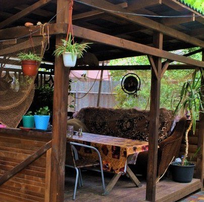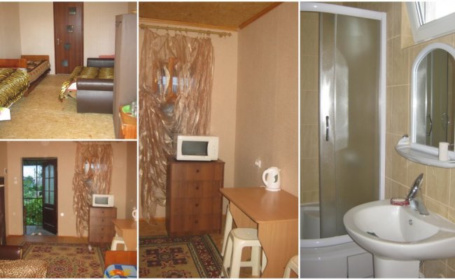 Есть: стоянка для 2 машин (бесплатно), + кухня ,газовые плиты, микроволновка, электрочайники, холодильники, 1 летняя душевая, 3 номера с душем и сан. узлом, горячая вода, теневые беседки, стиральная машина, утюг, в зелени площадка с мангалом, 1 летний смывной туалет. Круглосуточно холодная и горячая вода, есть собственный источник воды (колодец) и городская вода! (важная позиция для курортных городов, где воды не хватает). В комнатах вентиляторы и необходимая мебель. Wi-Fi скоростной (100мбс). Уборка в комнатах производится самостоятельно, либо 1 раз в неделю хозяином.