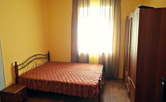 Усадьба предлагает размещение в домике с двумя спальнями и каминной комнатой, а также с санузлом (горячая вода, бойлер, гидромассажный бокс) и кухонным уголком. В спальнях – двухместные кованые кровати с ортопедическими матрасами, необходимая мебель (шкафы, тумбы, полки), современный телевизор и DVD-проигрыватель. Интерьер коттеджа выполнен в стиле хай-тэк. В домике могут свободно разместиться 8 гостей.