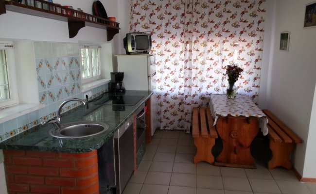 Меблі, чистий постіль, посуд, мангал, сковорода для вогнища, ел.комфорка, ел.духовка, кавоварка, посудомийна машина, пральна та сушильна машина, холодильник, 2 телевізори, супутникове телебачення, DVD + диски, автономне опалювання, праска, подвійні вхідні двері, решітки на вікнах, сітки від комах на дверях.