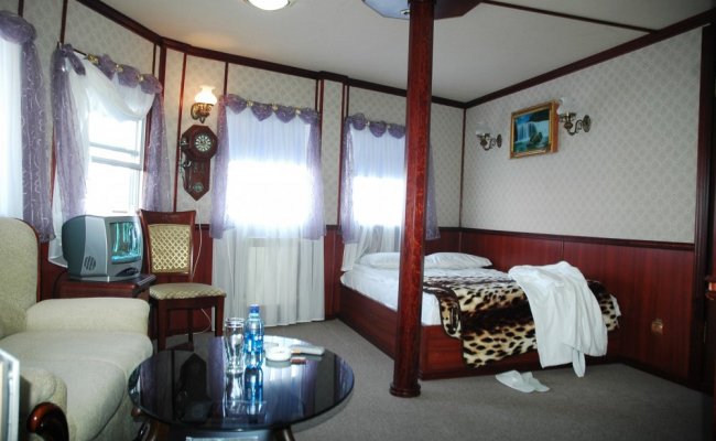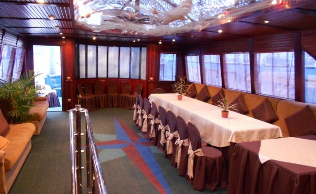 - 30 комфортабельных кают (стандарт, люкс, бизнес — класс), в которых можно разместить около 70-80 человек.
