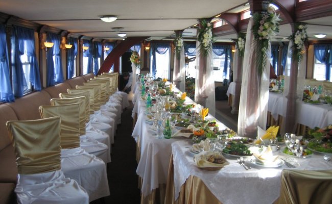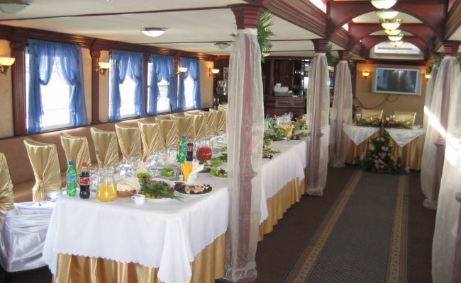 К услугам гостей на теплоходе "Богдан Хмельницкий" в Киеве:
