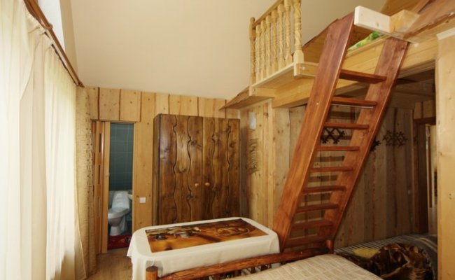 Усадьба «Райтштоки» новая, построена 2005 году, интерьер оформлен в стиле охотничьего домика. На двух этажах расположены 8 комфортабельных номеров, на 2-4 человек в номере. Автономное воздушное отопление, постоянно есть вода. Питание по договоренности: 2 или 3 раза. Входит в стоимость проживания: паркинг, пользование кухней и стиральной машинкой, утюгом. Можно привозить домашних животных.