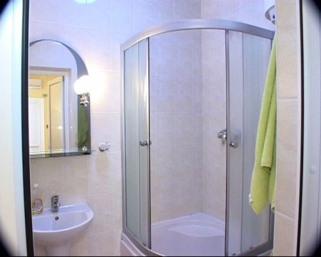 Санузел совмещенный (душ, туалет, умывальник). Сантехника – современная. Пол и стены – современная плитка.
