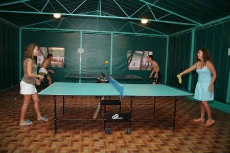 Настольный теннис и настольный футбол в закрытом помещении.
