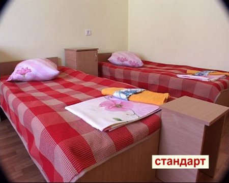 В номерах: современная мебель (кровати, тумбочки, вешалки, стулья, стол), постельные принадлежности (комплект постельного белья, подушка, одеяло, покрывало), 2 полотенца (для лица и тела). На полу – линолеум, стены – покраска. На окнах – стеклопакеты, жалюзи.