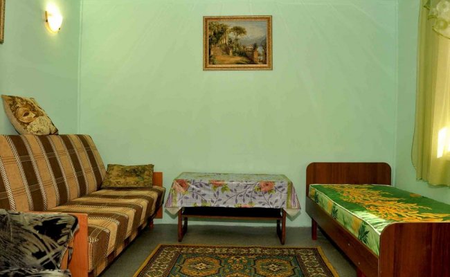 Комфорт в домиках обеспечен чистым постельным бельем, круглосуточным доступом к Wi-Fi, кабельным телевидением, бытовой техникой, посудой, мангалом и прочими принадлежностями. Зона отдыха на территории порадует цветами и плетущимся виноградом.