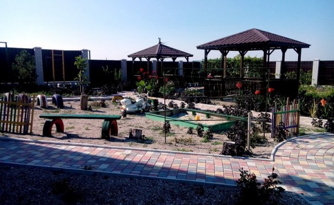 Просторный зелёный двор, обилие цветов, детская площадка, качели, горка, песочница, беседка для отдыха, шашлычница-мангал. Место для стоянки автомобилей на территории.