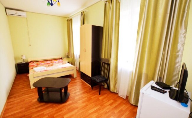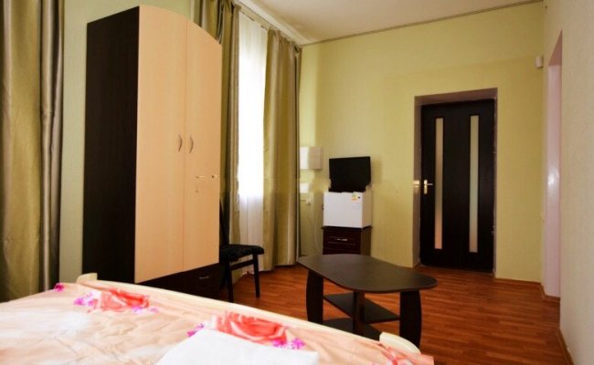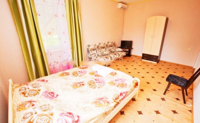 - однокомнатные, двухкомнатные номера и трехкомнатный отдельностоящий коттедж.