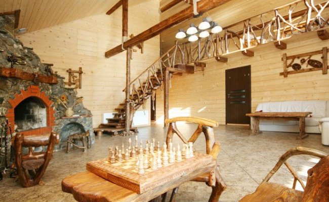 На первом этаже расположен незаконченный развлекательный комплекс, на 2 этаже - большой каминный зал, терраса, столовая (оборудованная всей необходимой бытовой техникой), 9 номеров (8 стандарт, 1 полулюкс), на 3 этаже - библиотека, конференц-зал, 3 номера (2 стандарт, 1 полулюкс).