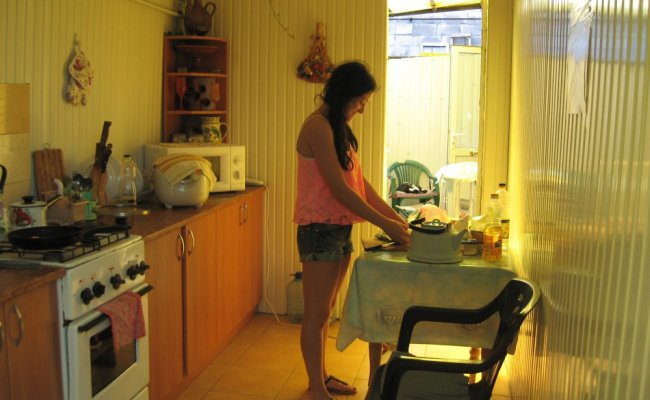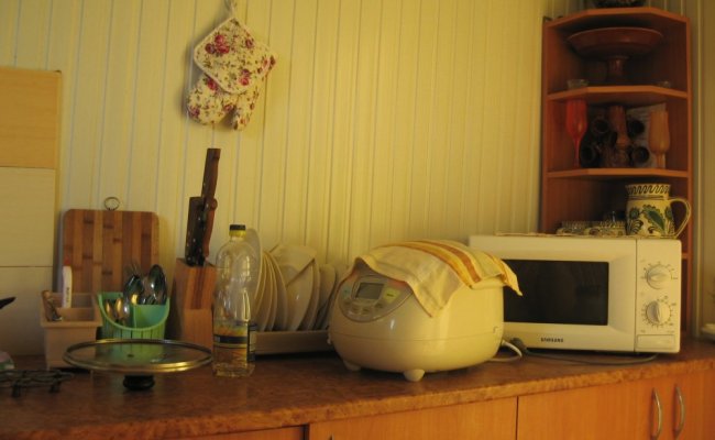 В кухне обширный выбор посуды и кухонных принадлежностей, мультиварка, микроволновка и т.д., есть стиральная машина, утюг и гладильная доска,фен.
